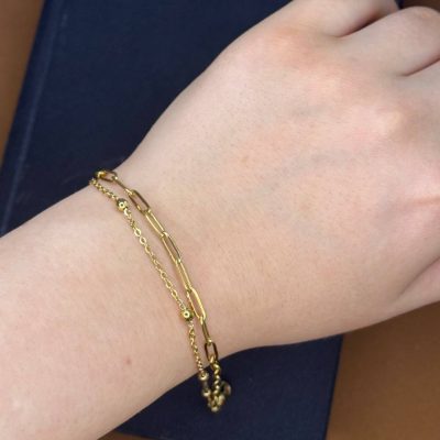 این دستبند از استیل ضدزنگ ساخته شده و طراحی ظریف آن جلوه‌ای خاص به دستان شما می‌بخشد. رنگ محصول ثابت مانده و مناسب استفاده روزمره یا مراسم‌های ویژه است.